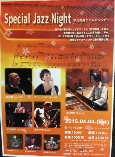 市川秀男(pf)、市川峰子(Vo)、ギラ・ジルカ(Vo)、筒井賢(Vo)