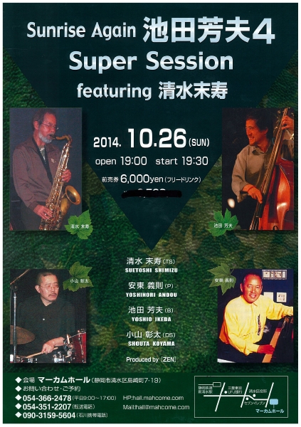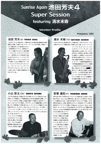 清水末寿(t,sax)板橋文夫(piano) 瀬尾 高志(Bass) 竹村 一哲(Drums)