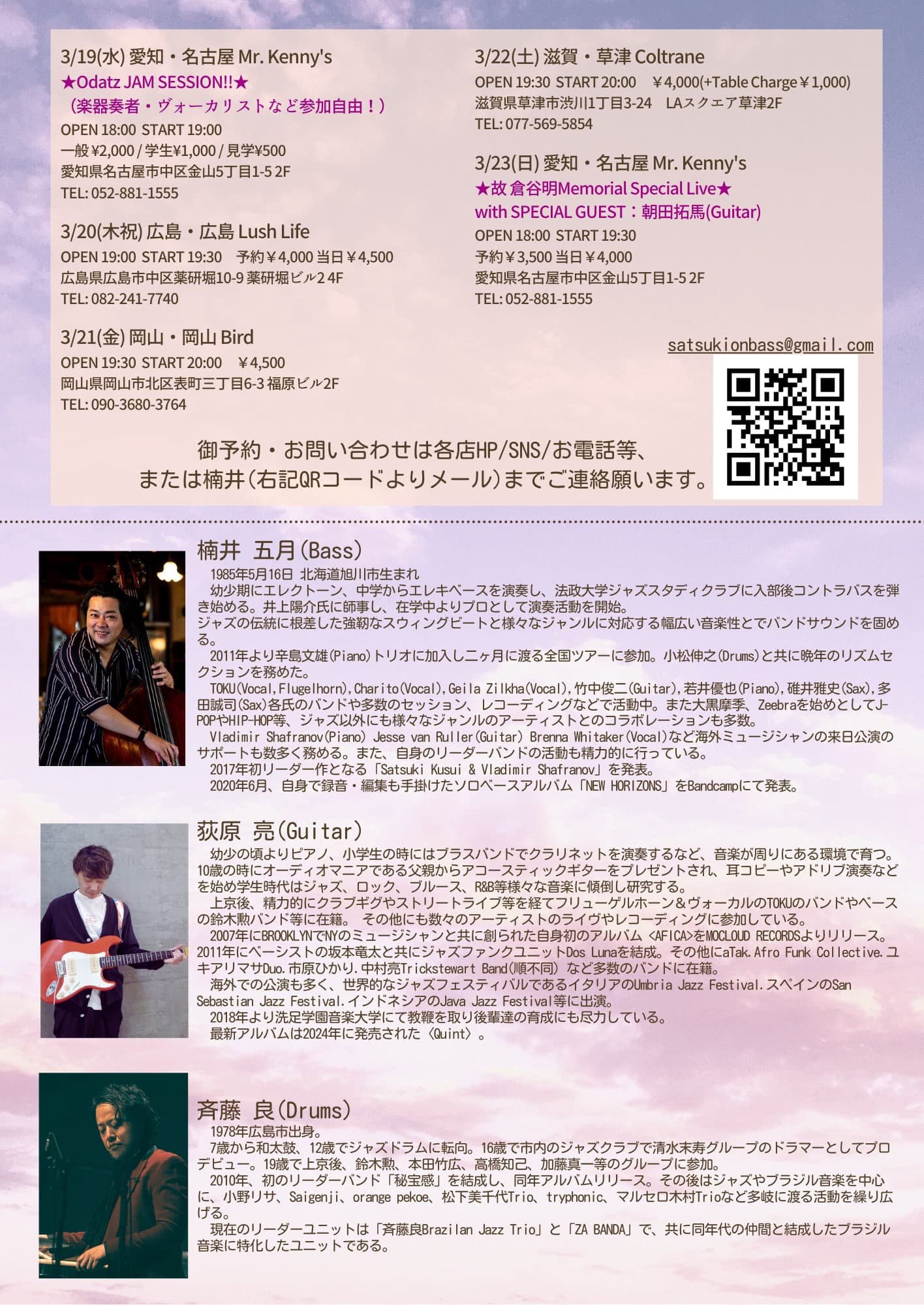 また、国内・外からもミュージシャンを招いてのSpecial Eventも随時開催します!!