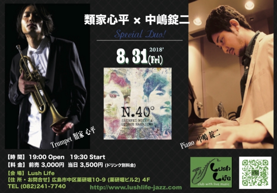 日本の巨匠 a,s 林 栄一 × dr小山彰太 を迎えて、初日はDuo演奏、翌日19日には重鎮サックス奏者 あにやん清水末寿でのクインテット演奏!